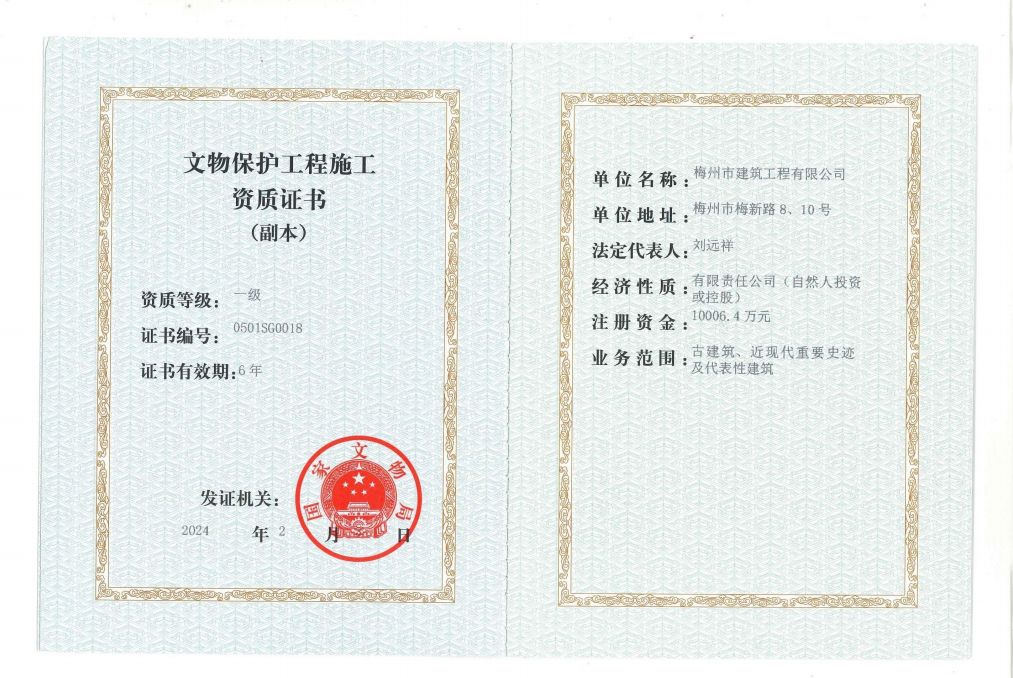 文物保護(hù)工程施工一級